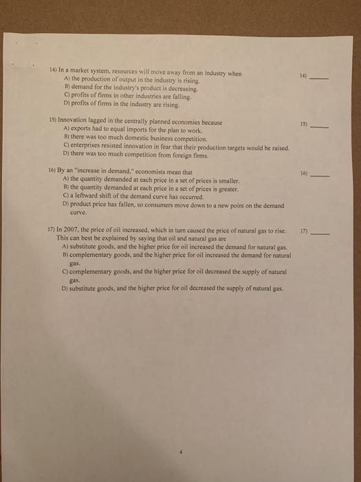In a market economy. 15 15 Innovation lagged in the centrally planned economies because A exports had to. The willingness and ability of consumers to pay the prices B.