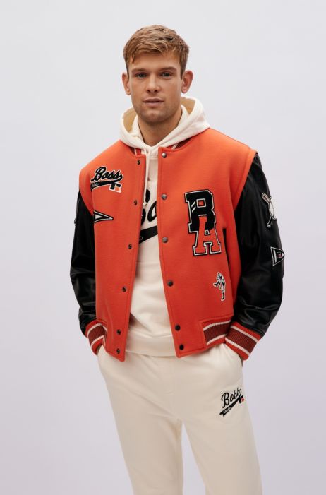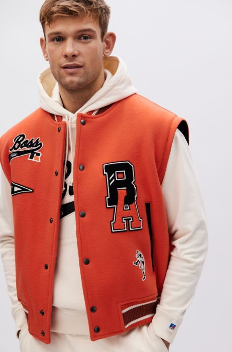 The iconic American black and black letterman jacket made of 24 ounce black wool body with black cowhide leather sleeves. Order it now because were offering FREE SHIPPING with every outfit. Letterman Jacket Orange 2 sold in last 8 hours Availability. Stewart Strauss makes the finest letterman jackets not only in Black and Texas Orange but in any color under the sun. Home Tops Jackets Orange Letterman Jacket L Orange Letterman Jacket L How to use our platform. Body Made of 100 Genuine Wool. Ad Shop the latest designer collections now.